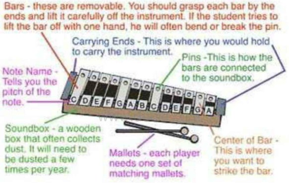 1) 钟琴:木质槌头,13个音条,镀镍金属