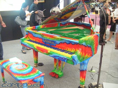 Gibson不但带来了其享誉全球的吉他,更引人眼球的是五彩缤纷的Baldwin定制钢琴。其中最印象深刻的是一架斑马琴,这是定制钢琴中最特别的一款,外观运用了独一无二的斑马图案设计,琴身以黑白相间的条纹突显出野性的奔放之美,最特别的是还有红色、黑色、白色相间的琴键。另外还有一台色彩绚丽的钢琴,这台钢琴全球只有六台,价值180万人民币,是全场最贵的钢琴。