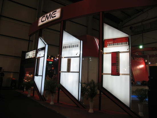 CME展出了U-Key便携键盘、VX超级火键MIDI键盘、WIDI X-8无线MIDI接口,以及SAC的DiGi 808数字调音台、Pump 6a和8a监听音箱,以及Vestax的DJ新产品。
