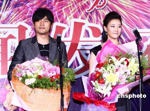6月29日,2009《魅力-中国》北京鸟巢夏季音乐会第四场发布会举行。宋祖英携手多明戈、郎朗、周杰伦在鸟巢与媒体见面,明日,四位艺术家将联袂在鸟巢献上一场艺术盛宴。图为周杰伦、宋祖英在发布会上。