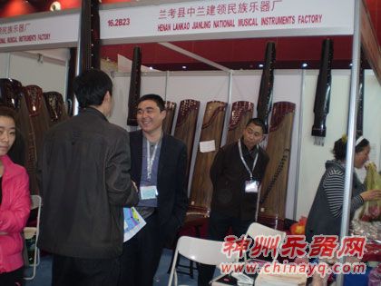兰考中兰建领民族乐器厂负责人跟客户交谈