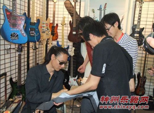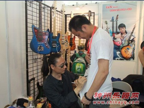 神州乐器网5月30日讯 第二十届中国国际专业音响·灯光·乐器及技术展览会”(PALM EXPO 2011)于北京中国国际展览中心(老馆)和全国农业展览馆成功举办,展会现场亮点多多,精彩不断,其中最让乐迷兴奋的是中国摇滚巨星唐朝老五亲临雅特乐器2011北京乐器展展位现场,零距离与乐迷接触,并为乐迷签名和合影。