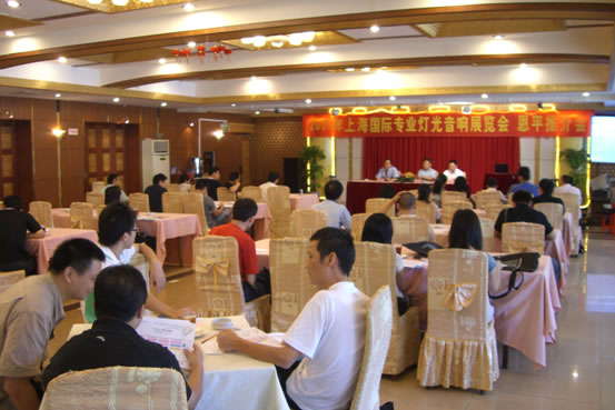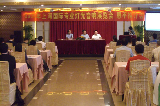 为了让专业灯光音响业界同仁更全面地了解由上海国际展览中心有限公司和法兰克福展览(香港)有限公司联合主办的2009上海国际专业灯光音响展览会Prolight+Sound Shanghai,主办单位在深圳推介会成功举办后又来到位于美丽的锦江河畔的恩平市侨联大酒店。