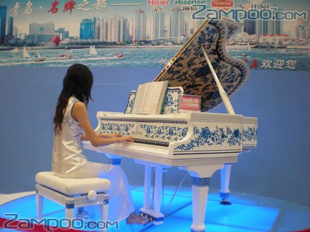 钢琴馆历来是乐器展的重头戏,被放在第一个展馆中,钢琴在我们的眼中一直高贵、典雅的代名词,一贯的黑色是我们对钢琴的最初印象,但是在这次钢琴馆中我们看到了许多特别的钢琴,下面就让展宝为介绍几款特色钢琴。