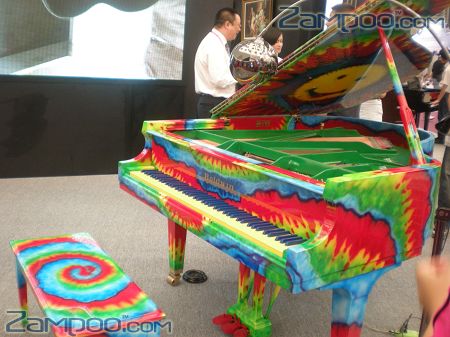 乍一看你一定觉得这个钢琴曾经在童话世界中见过,现场也引来了不少人的围观,琴体用色大胆张狂,如同彩虹一样炫目,尽显奢华气质。