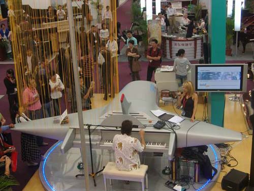 2008年上海乐器展期间,门德尔松品牌系列产品又推出了多款新品,轰动全场。一款飞机钢琴夺人眼球。这款钢琴采用现代设计的多层发音孔,弯月简洁的谱架和线条流畅的银色金属琴腿、水晶踏板,再配上时尚平整光滑的银灰色飞机形体琴身,使整架钢琴看起来如同在跑道上加速滑行的飞机。观者无不为其新颖的设计和大胆的创意而惊叹不已。