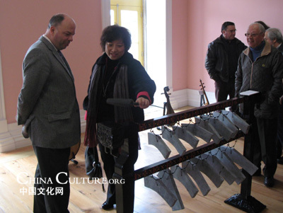 现场观众对中国乐器表现出浓厚的兴趣,并对中国人民的智慧赞叹不已。