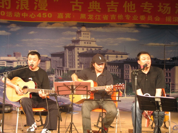 时间静止了,音乐在跳动;思想静止了,灵魂在舞蹈。6月5日下午18:30,一场音乐视听盛宴在学生活动中心450浪漫开场。受我校摇滚公社之邀,中国著名吉他演奏家、全国吉他大赛评委、黑龙江省音乐家协会吉他专业委员会会长陈宝忠携吉他专业委员会的演奏家们来校倾情演出。