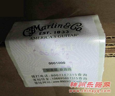 同时,雅登乐器作为Martin公司在中国大陆地区的唯一合法总代理,提醒广大经销商及用户,凡是经由雅登乐器出售的Martin吉他,在产品外包装箱上,均贴有防伪签,用户可刮开防伪涂层,拨打电话8007187315或发短信至106695887315或登陆www.800315.com查询。