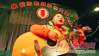 昨日下午,泉州市首届吉他大赛在泉州艺术馆拉开帷幕,近百名吉他高手汇集一堂,一争高下。据悉,此次大赛旨在全面展示吉他选手的演奏水平,推动市吉他音乐的发展,让众多的吉他爱好者在大赛中得到更好的锻炼与交流。图为一名小选手正在尽情演绎中。