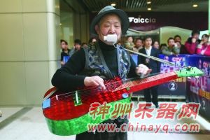 下午两点过,一位头戴“博士帽”,肩挎“别样吉他”的老者又赶来了。填完表格,递给评委,抱着吉他,他就自我陶醉地唱了起来,那歌声低得让人有些“窒息”。老者告诉记者,他叫王钟保,今年62岁了,曾经是个打铁匠,由于喜欢音乐,很早的时候就在打铁间隙自制小提琴、笛子等乐器,而做吉他是他最擅长的。