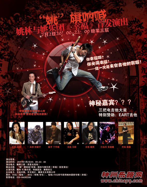 2011年7月2日晚“姚”旗呐喊•幸福—姚林与姚乐团《幸福》首发演出将在糖果三层(原星光)盛大上演!