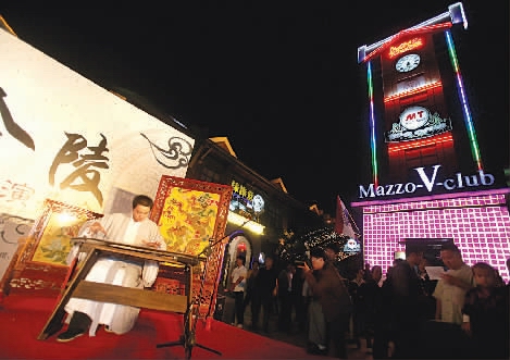 近日,全国首场户外古琴演奏会在南京1912时尚街区博爱广场上开奏,吸引了众多市民驻足聆听。本次演奏会不仅演奏了《广陵散》、《梅花三弄》等经典乐曲,还用古老的古典乐器演奏了《菊花台》等流行音乐,让现场观众大呼过瘾。图为九竹琴社社长葛勇在演奏古琴。