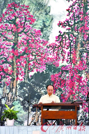 近日,张子盛、朱晞、赵家珍夫妇、丁承运等一批当代知名古琴艺术家和学者,从全国各地及日本会聚从化明月山溪。众艺术家抚琴弹曲、切磋技艺,成为近30年来最为难得的古琴演奏盛典,在岭南最大国画《岭南春晖》的背景下,众名家居高临家下,《平沙落雁》、《白雪》、《三峡船歌》、《山中思友人》、《乌夜啼》、《广陵散》、《渔樵问答》、《长门怨》等一批琴中名曲绕梁三日,把听众带进了个空灵、古雅的纯净境界。本报记者走访了出席演奏会的部分名家,与古琴迷一起享受雅趣。