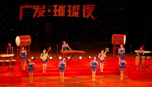 广东发展银行韶关分行为庆祝建行20周年而举办文化活动, 粤北山城韶关剧院,中国知名女子乐团“紫凤鸣乐中国女子乐团”莅临韶关,为民众倾情演绎了一场传统与时尚,古典与现代的华美乐章。