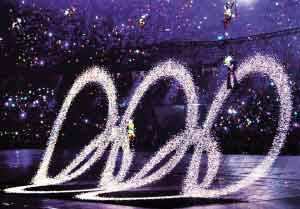 升入空中的“梦幻五环”,是由4.4万颗LED在一张大网上描绘而成的。连演员身上的演出服也缀满了一颗颗LED,随着演员阵形的变化,让星空降临人间、“鸟巢”幻影重现……