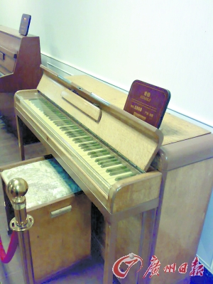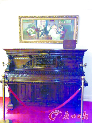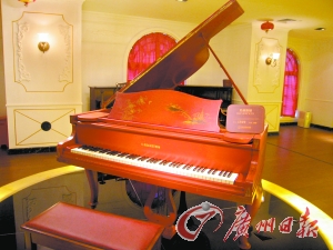 还有一台特别与众不同的珍贵钢琴藏品就是1929年产自德国的贝赫斯坦钢琴。那是一台周身红色的漂亮钢琴,在黄色聚光灯的照射下格外醒目。走近一看,记者发现琴身周围有很多别具一格红底镏金的装饰画:亭台轩榭、鸟鸣蝶翩飞、宽袍长裙的古人闲坐垂钓。如此浓郁的传统“中国风”让人不禁眼前一亮。