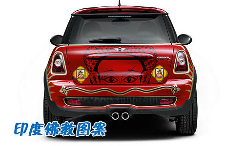 MINI用现代方式,重新诠释了乔治.哈里森所拥有1966年款Cooper S。该车涂装用富有奇幻色彩的方式表现印度佛教的坐禅景象与梵语颂歌。这源于早在甲壳虫乐队时代,哈里森就被印度的音乐及哲学所吸引,印度文化也影响了哈里森往后的人生及音乐创作。