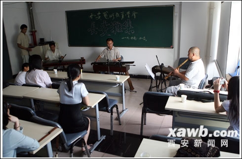 20多岁的古琴爱好者萧子毅跟古琴演奏家李延民学习古琴已经4年了,李延民告诉记者,昨日到场者里有商人、教师、学生、企业家、公务员,年龄虽然都不大,但都是出于对古琴的热爱而参加的。“也许是现在生活节奏加快,学习古琴可以陶冶人的性情,以往被视为‘阳春白雪’的中国古琴艺术,正越来越受到普通市民的青睐,我们这些古琴爱好者每个月的第一个周末都会聚在一起,以琴会友,既能切磋琴艺,又能愉悦身心。”萧子毅告诉记者,古琴爱好者自发排演的节目近日在西安不少高校义务演出后,引起了学生们极大兴趣,现在,很多高校社团都邀请他们去演出。