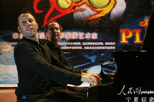 昨晚,由银川市丽音乐器有限公司和德国博兰斯勒钢琴音乐基金会主办的“钢琴也疯狂”中国巡演银川站在银川市金凤凰电影院激情上演。德国的国际顶尖钢琴表演艺术家欧米勒孖宝(Pianotainment)钢琴组合让银川的观众感受了一次特别的钢琴音乐会。