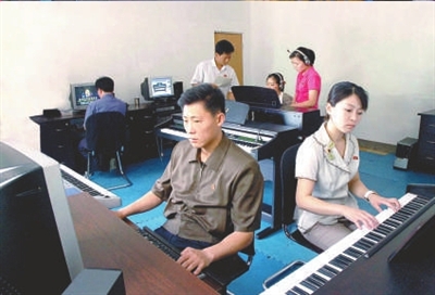 朝鲜中央通讯社8月3日提供的照片显示,朝鲜电子音像会社生产出数字式电子钢琴和电子风琴,可以与电脑连接,用于音乐创作和编辑。