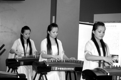 在吉林省的展位,3位弹奏古筝的美少女成了“明星”。她们不仅在吉林省的展位演奏,还于昨日中午时分在辽宁工业展览馆门前广场上为市民演奏了一段古曲。