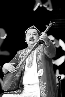 维吾尔族参赛选手买买提依明·吐尔洪在比赛现场用民族弹弦乐器热瓦甫演奏《西班牙斗牛士》。