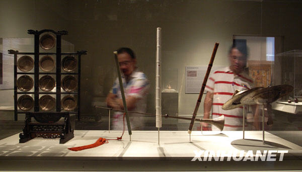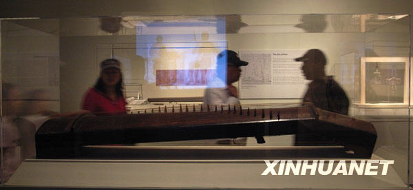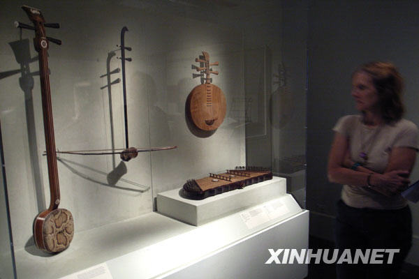 9月5日,在美国纽约大都会艺术博物馆,观众在参观“丝竹:中国音乐与艺术”展览。当日,“丝竹:中国音乐与艺术”展在大都会艺术博物馆开幕,共展出公元前5世纪至今的60余件中国乐器和音乐艺术品。新华社记者刘欣摄