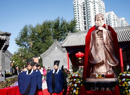 正在祭拜孔子