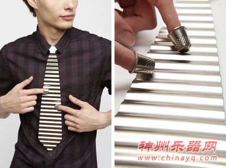 这款金属领带做工精细,其闪亮特质除了能让你增加回头率之外,它还附加了几个金属指套,用指套在领带上轻轻敲击,富有音乐天赋的即兴演奏家们肯定也能奏出一曲清新的《东风破》。