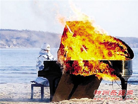 日本钢琴家山下洋辅去年在日本海边举办个人独奏时,也玩过火中弹钢琴的噱头。不过当时66岁的山下洋辅身穿厚厚的防火服,当钢琴声响起的同时,琴体被工作人员引燃。没过多久,整架钢琴被烈火包围,变成一团火球,不时发出“劈劈啪啪”的声音。