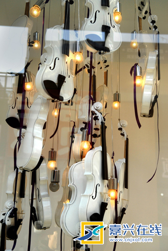 市区华庭街一家商铺,商家用吉他和灯泡组合出另类的“声光”效果,赚足了回头率。