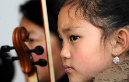 3月14日是星期天,拉萨市第一小学三年级学生雍仲措报名参加市少年宫小提琴班。8岁的雍仲措是一名普通市民的孩子,性格开朗,从小爱唱爱跳。父母希望她学到更多的东西,便把她送到这里学琴。据了解,拉萨市少年宫业余兴趣班开设了小提琴、古筝、钢琴、美术等课程,仅学习小提琴的孩子就有20多名。