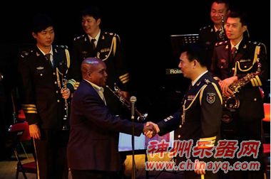苏里南国防军司令恩斯特・麦库尔祝贺军乐团演出成功