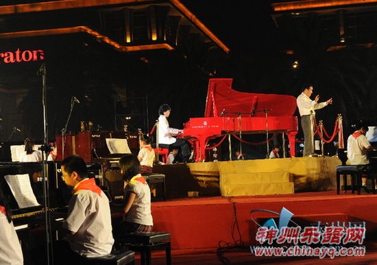 琴童从上千名6-16岁的琴童经层层筛选而来。他们胸前的红领巾像一团火焰,生动诠释着演出现场打出的大幅标语——“世界红、中国红、重庆红、南滨红”。当身着白色演出服,神采奕奕的李云迪走上舞台时,全场掌声雷动。李云迪告诉观众,红色象征着吉祥喜庆,是最能代表中国的颜色。他一直有一个梦想,就是要把中国的经典文化推向世界。之所以选中南滨路作为世界巡演首站,是因为这里是万里长江第一大路,在这里演出有着特别的意义。