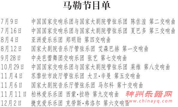 从7月9日到12月2日,国家大剧院将在5个月时间里,上演马勒的全部交响曲,合作者包括艾森巴赫、大卫·辛曼、夏巴多等世界一流指挥家和苏黎世管弦乐团、亚洲爱乐乐团等一流乐团,作为对马勒逝世百年的纪念。