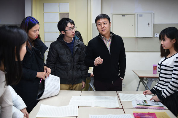 著名作曲家、中央音乐学院作曲系研究生导师常平在给学生作指导