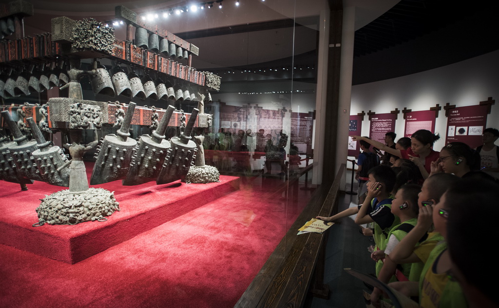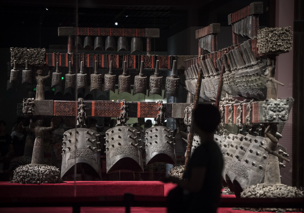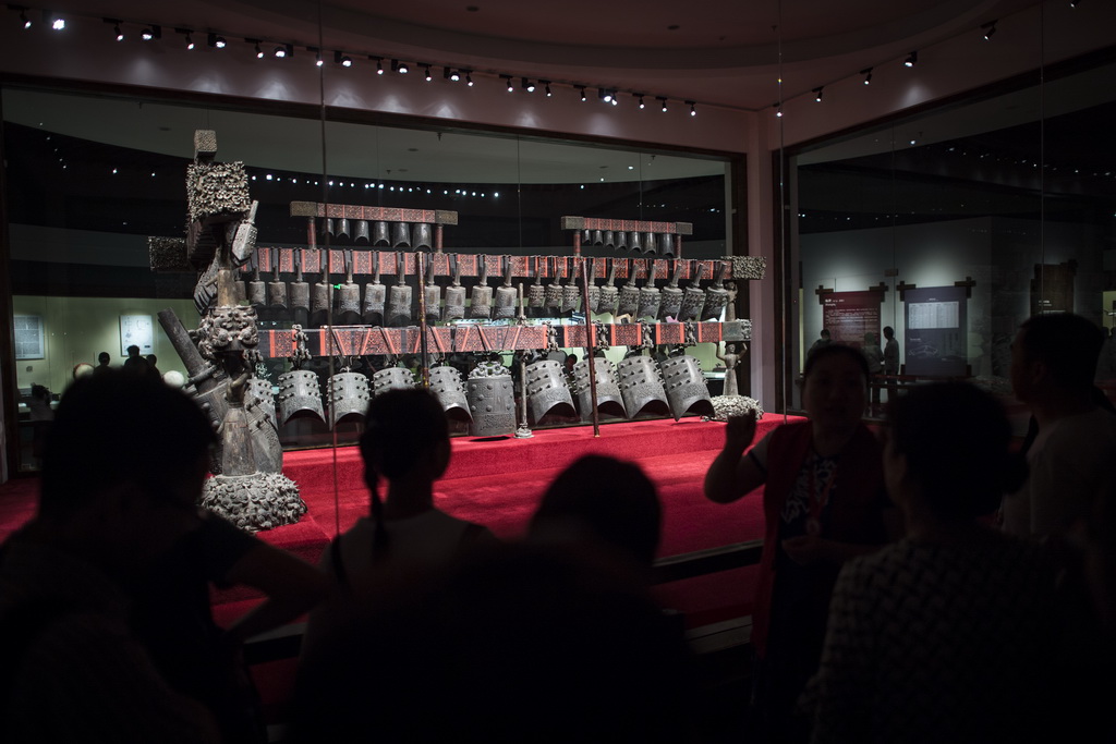 这些罕见的音乐文物中,不仅包括曾侯乙编钟原件,还有在曾侯乙墓同时出土的编磬、琴、瑟、排箫、竹箎等共九种125件乐器。