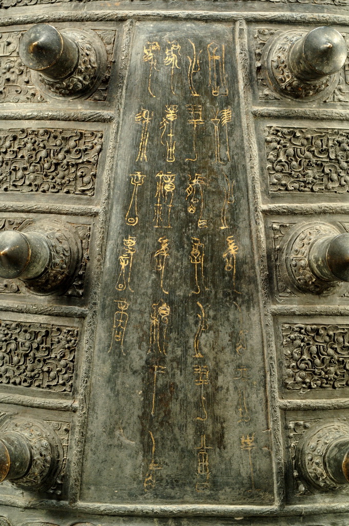 在曾侯乙编钟的钟体、钟架和挂钟构件上,共有3700多字铭文。这些铭文不仅标注了各钟所发音律及律调阶名,还清楚地表明了这些阶名与楚、周、齐、申等各国律调的对应关系。