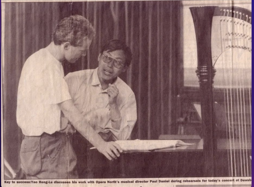 1993年英国北方交响乐团演奏姚恒璐教授《升华》第七乐章(图为姚与指挥Paul Daniel交流)