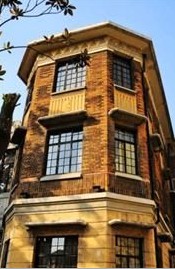 回到正题,走近襄阳路388号的弄堂,老别墅近在眼前,独立式花园住宅,不对称的结构布局极富情趣,东侧的骑楼形成主入口的门廊空间,面向花园的一面有凸出的三层多边形塔楼,放眼望去,这棱角鲜明的塔楼总是最吸引眼球,让人一看过去,就收不了眼。塔楼层与层之间有水平装饰腰线,一层是浅色的石砌立面,上面两层则是砖砌的深褐色立面。深浅间隔的外立面极富节奏感,那久经时间历练的颜色,历久弥新。塔楼一侧开有几扇面对花园的大窗,可以想象在天气晴朗阳光明媚的日子里,在明亮的窗前,或是在鸟语花香的院落里,聊天、品茶、听曲儿的情景,三五好友围坐在桌前,小蜡烛点点火光让茶汽升腾升腾,拿起一杯茶,茶汤红亮,细细抿上一口,回味悠长,就着茶点蜜饯,鸟语花香,天南海北的聊上一个下午,一幅多么轻松惬意的景象。就连一墙之隔的襄阳路上的喧嚣,在这里听上去,似乎都成了一种别有趣味的衬托。别墅窗沿处的线条及构图,充满了艺术装饰派的特征。走近了细细品味,总是能被那比例宜人的构图所打动。