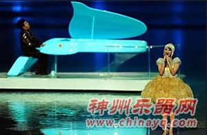 (来源:珠江钢琴)本届亚运会开幕式最大的特色就是在时空上有革命性的突破,跳出传统的演出形式和概念模式,让演出从形式到内涵都带来很大的拓展空间,是一场多视角、全方位的城市行为艺术盛宴,具有不可复制、无可比拟的特性。珠江钢琴人以实际行动参与亚运会,接受亚运会组委会邀请,在短短两个月时间内,为亚运会开幕式研制了两台以广州英文字母GZ为外观造型的概念琴,G字型的钢琴外观设计,玲珑雅致又极富现代感,代表着广州的高贵时尚和优雅律动;Z字母的琴脚造型晶莹剔透;琴盖象一艘船的风帆,扬帆珠江,驶出大海,走向世界;黑白跳跃的琴键,奏鸣出宛如天籁的琴音;湖水蓝色的钢琴与潺潺珠水、万家灯火交相映衬,让您享受一场完美的视听盛宴。这台珠江概念钢琴,在亚运开幕式中篇《白云之帆》中,冉冉升起在珠水中央,与珠水、华灯辉然一体,著名青年钢琴家郎朗及著名演员章子怡共同演绎了《时光》。