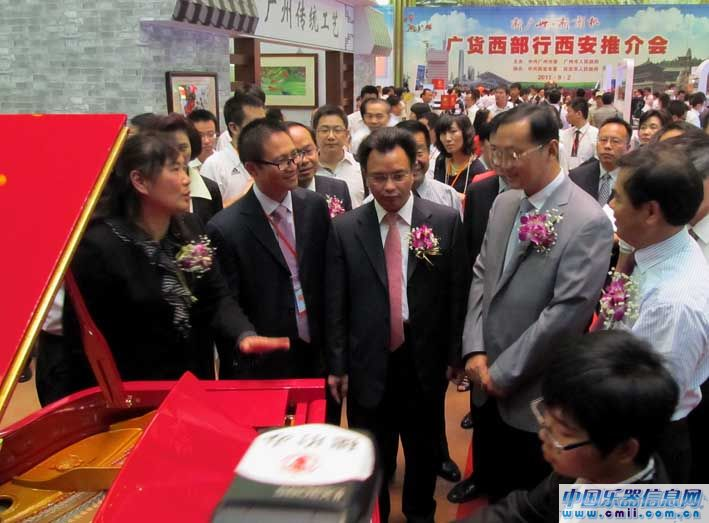 “新广州 新商机”系列推介活动是广州市委、市政府为贯彻落实《珠江三角洲地区改革发展规划纲要》,进一步推动广州加快转型升级和结构调整,推进广州建设国家中心城市而举办的重大商贸推介活动。此次广货西部行活动由广州市市长万庆良亲自率团,常务副市长邬毅敏、副市长甘新、贡儿珍、市政府秘书长谢晓丹等政府领导和各有关部门主要领导、重点企业负责人全程参与。珠江钢琴集团总经理李建宁带队参加活动,珠江·恺撒堡钢琴、艾茉森数码钢琴均在展厅中心位置重点展示。