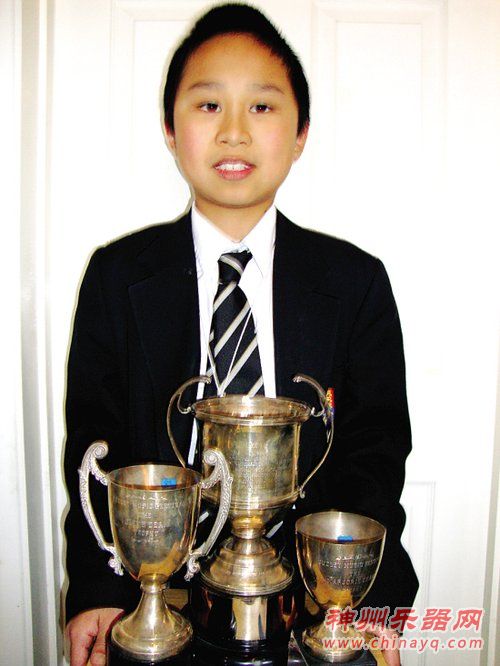今年3月5日至7日,英国班卓琴、曼陀铃、吉他联合协会为庆祝该协会成立50周年,在伯明翰市艾巴斯顿中学举行音乐节汇演及比赛。虎虎参加了14岁以下年龄组吉他演奏比赛,名列第一,赢得了该组唯一的一个奖杯。这个奖杯来之不易,因为参赛者并非使用同一乐器,除了吉他,还有班卓琴、曼陀铃等,而裁判员往往各有所长、各有所好。在众多的参赛者中,虎虎演奏的吉他以最高分赢了所有对手,确实不易;更难得的是,他是该联合协会自1929年成立以来,历次举办的全国比赛中,第一位由吉他选手夺得第一名的人。