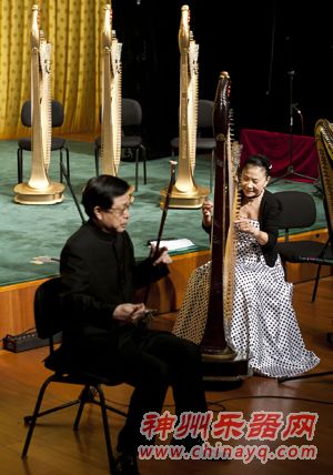 崔君芝用箜篌为二胡演奏家王国潼大师伴奏