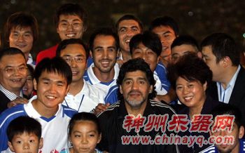 作为马拉多纳温暖中国行慈善赛的第二站,东莞比赛于北京时间11月7日晚在东莞体育场开打。在昨天下午的媒体见面会上,迟到半个小时的马拉多纳为取悦球迷甚至现场搞怪拉起了二胡,引来现场一片笑声。