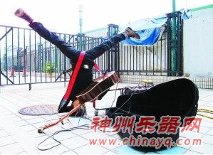 “真是厉害,不仅倒立的这么稳当,而且还能边弹边唱。”看着“倒立哥”的表演,在一旁摆摊的中年男子啧啧称奇,而当“倒立哥”弹唱到歌曲高潮部分,两只脚随着音乐节拍晃了起来时,中年男子更是佩服的哇哇大叫。