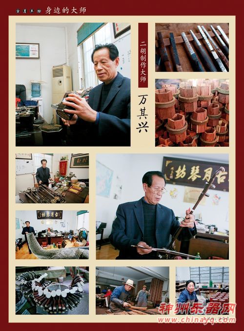 在梅村的二胡制作大师中,万其兴、陆林生和强金波等是江南地区久负盛名的胡琴工艺大师。万其兴制作的二胡在2009年第二届极品二胡评比中荣获金奖,获得“二胡制作大师”的光荣称号,2010年他受邀参加香港国际二胡制作比赛,一举夺得三金二银的喜人佳绩。无锡二泉广场的阿炳纪念馆内那把阿炳当年演奏《二泉映月》的二胡复制品,就出自于万其兴大师之手。陆林生制作的二胡在中国音乐家协会主办的“全国天华杯青年二胡演奏比赛”中荣获一等奖(中央民族乐团刘扬),他还曾先后获国际艺术节最高荣誉奖和“韩、中、日艺术名人大奖”。强金波制作的二胡参与了春晚节目《茉莉花》的录制。2010年3月,强金波老先生制作的“吴琴”被国民党荣誉主席吴伯雄先生收藏,他设计制作的“梁鸿孟光对琴”2010年11月参加第二届东方工艺美术之都博览会被评为“迎春花奖”。