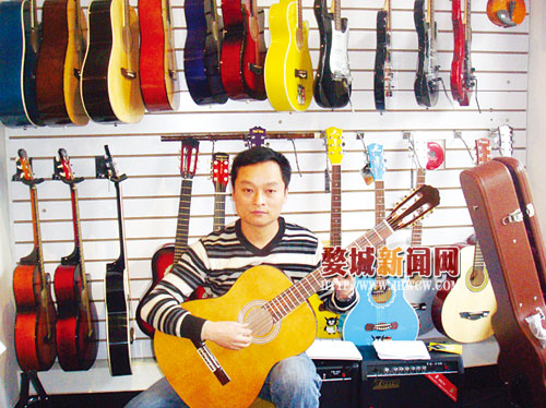 回到金华以后,陈彪有了一个很大的转变,由原本的张扬渐渐变得平和,从事的工作也从乐队演出逐渐转向了教学辅导。有朋友说他可以称得上是金华吉他辅导的第一人。陈彪告诉记者,97年金华市区只有一家“江南琴行”,到了现在估计有近30家了。“前几天我发现火车站附近又开了一家新的,过几天路过哪条路发现又冒出一家新的来,现在的琴行就像雨后春笋一般,滋长得厉害。”每年的寒暑假,是陈彪最忙的时期,每天他要给9个学生分别进行一对一的教学,两个月下来学生多达三百人。目前仅浙师大课外培训的学生就有两、三百名,由于喜欢他的教学方式,有一些已经移民去了美洲、欧洲的学生,每到假期返乡,还是找他继续学吉他。