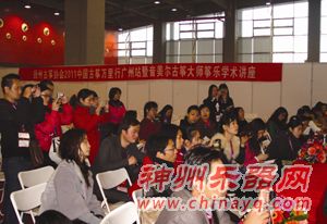 2011年3月9日—12日广州国际乐器展览会在中国进出口商品交易会琶州展馆举行,大会云集了国内外企业800余家,展馆面积逾6万平方米,为历史之最。由扬州音美尔民族乐器有限公司主办、大会组委会承办的“2011中国扬州音美尔古筝大师学术讲座”如期在16号馆4楼会议厅拉开序幕。
